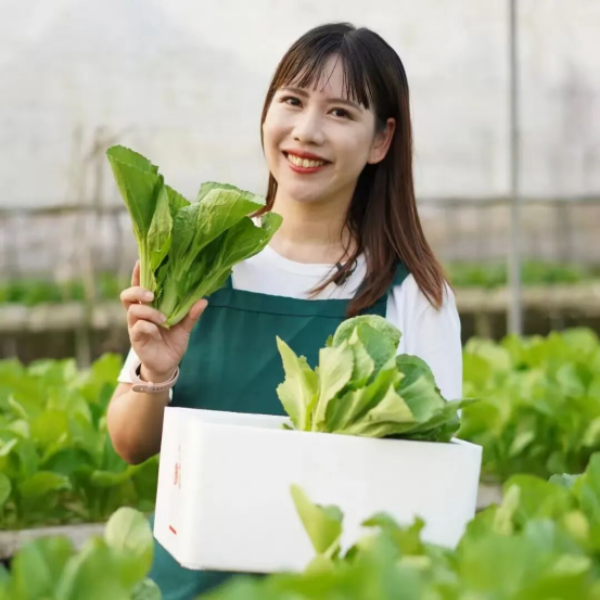 她积极履行社会责任,创新帮扶模式,建立“企业+农户”机制,派出核心技术骨干常驻肇庆、桂平,手把手教授当地村民种植水果玉米和水培蔬菜,带动农户增收。参与“您家的菜我来送”公益行动,助力东西部协作,采购东西部协作地区农产品,畅通销往大湾区的渠道。