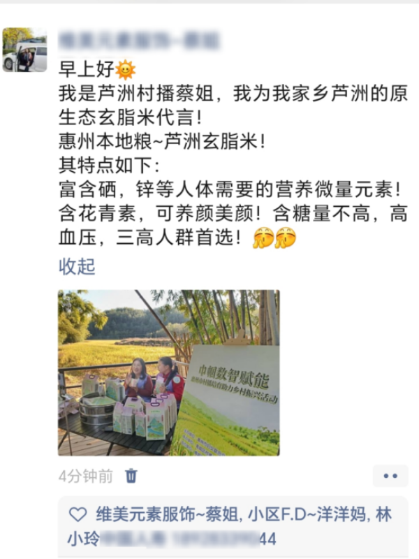 此次活动通过“轻培训、重实战、强助推”的模式开展,采用“即学即用”实战教学法,培训环节,由惠城区村播(联盟)妇联主席刘葵,惠城区村播(联盟)妇联副主席、惠州城市职业学院教师黄洁瑜,惠城区村播(联盟)妇联执委李允思进行授课,三位老师系统讲解短视频拍摄技巧、直播沟通话术及平台运营规则。惠城区村播(联盟)妇联副主席、芦洲镇属国企惠州市惠城区芦洲新奇特农工贸发展公司总经理、芦洲镇芦村妇联主席舒赢分享其助农带货芦洲玄脂米的心得与技巧,惠州城市职业学院学生团队全程协助参与。