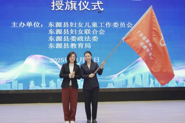广东省家教家风志愿服务队队长祁丽珠为东源分队授予队旗,分队队长朱扶容接过旗子。她将带领打造一支覆盖广、专业强、结构多元化的志愿服务队伍,开展形式多样的公益服务,为东源县家庭教育事业添砖加瓦。