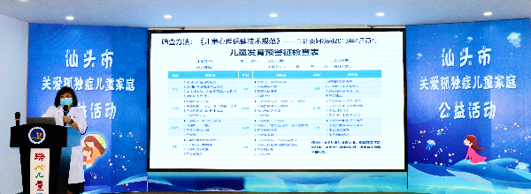 现场邀请了广东省医学会儿科学分会行为与发育学组专家蔡雪莹作《孤独症如何早期发现》专题讲座。她指出,儿童孤独症也称儿童自闭症,以男性多见,起病于婴幼儿时期,以言语发育障碍、人际交往障碍、兴趣狭窄和行为方式刻板为主要特征,早期不易识别,容易错过最佳干预期。开展孤独症谱系障碍儿童早期识别筛查知识普及,促进孤独症患者的早发现、早诊断、早干预,是改善不良预后的有效方法。